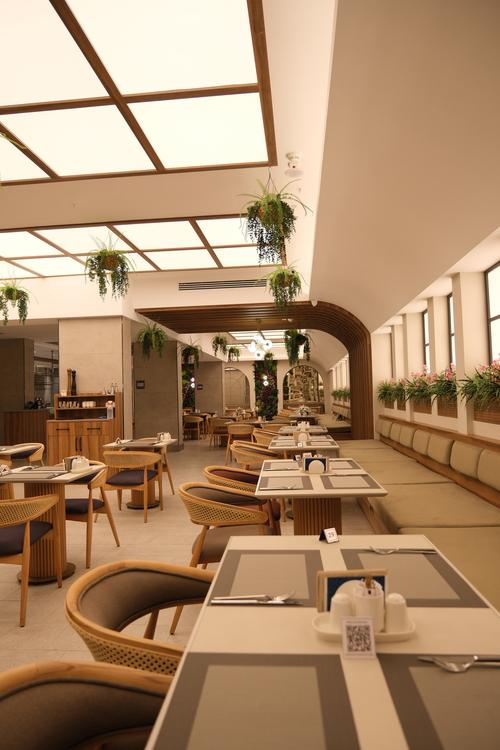 Ana restoran açık büfe kahvaltı sunar.